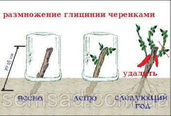 Важливо- при способі живцювання гліцинії, живці зацвітають на 4 рік після живцювання і вважається одним з перших і кращих способів для швидкого цвітіння.