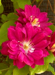 Клематис Ред Пешн. Чудово красивий ексклюзивний сорт. Багатошарові, щільні, сильно-махрові червоні квіти підкладкою з'являються протягом тривалого періоду з червня по вересень. Дуже гарне переливчасте забарвлення квітів - від холодних рожево-фіолетових до теплих абрикосових. У міру цвітіння з'являються абрикосові відтінки. Підходить для вирощування у горщиках, патіо.